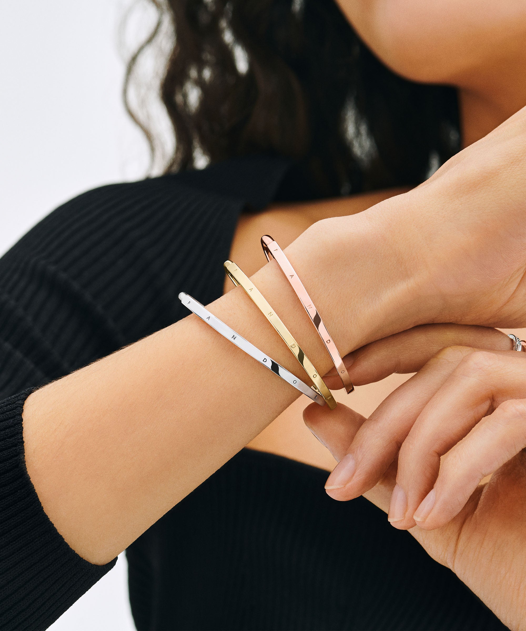 That’s right: The bangle is back, though it’s emphatically not the same as the armful you wore as you hustled to Honors English. It’s quieter, in acoustics and design. It’s sophisticated. And it can fit any personal style — especially if you choose the Pandora Signature I-D Bangle.