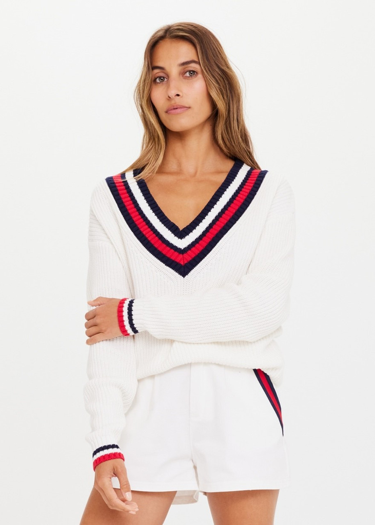 “This collection is representative of the heritage of our brand, so I really wanted to have that classic but contemporary feeling, that was obvious from the beginning [like]preppy colors of red, white, and blue, which is not anything new to The Upside. We were also inspired by the dress shapes worn by iconic Australian tennis players, such as Evonne Goolagong Cawley, and paid homage to their style of dressing through the design process.