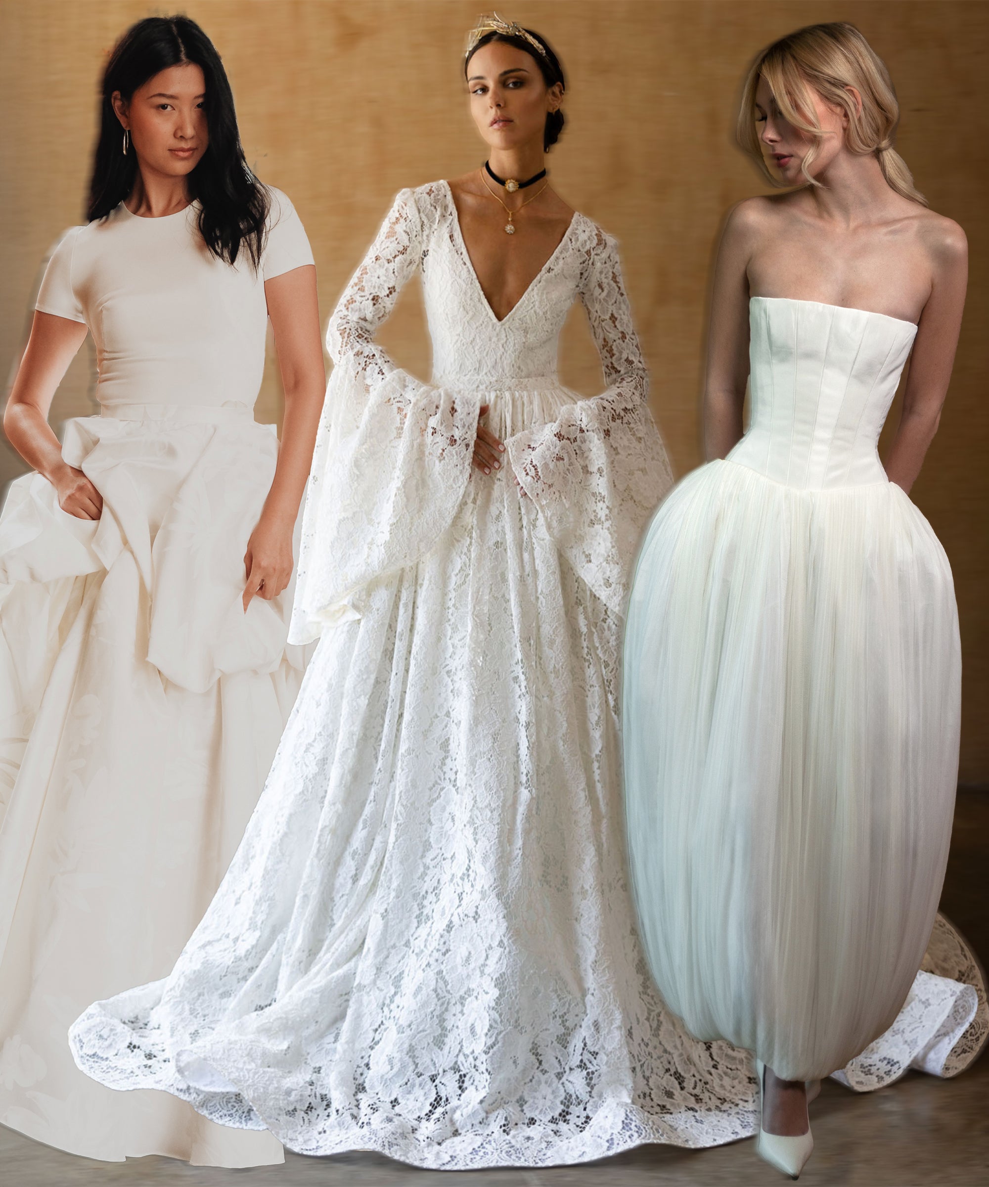 This season, bridal designers reinterpret the classics through their distinctive, and often unconventional, visions. The experimental fabrications (see: woven mohair), elaborate adornments (star constellations), and out-of-the-box shapes (bubble skirts) speak directly to an exceptionally informed clientele. Today’s brides not only have their fingers on the pulse of — and stay ahead of — fashion trends, but also want to express individuality through their wedding day style.