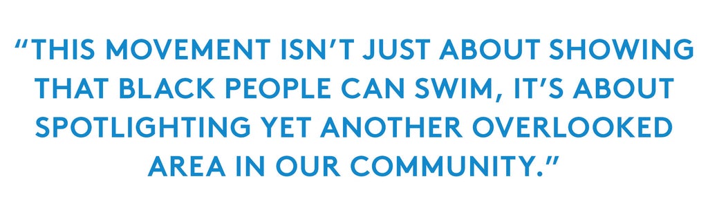 Christian O’Brien, a friend who supported Singleton as she created the swim movement, champions AfroSwimmers as world-changing work. “This movement isn’t just about showing that Black people can swim,” she says. “It’s about spotlighting yet another overlooked area in our community — which also means missed opportunities for scholarships and accolades — that would have otherwise prevented unnecessary deaths by drowning. AfroSwimmers means another door opened for people of color.”