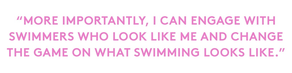 Melissa Brown, an AfroSwimmers member and competitive swimmer who is also training to compete in 2021, agrees: “Being a Black woman in swimming has always made me stand out — there are pros and cons to drawing that kind of attention, but AfroSwimmers makes me feel important in this sport.”
