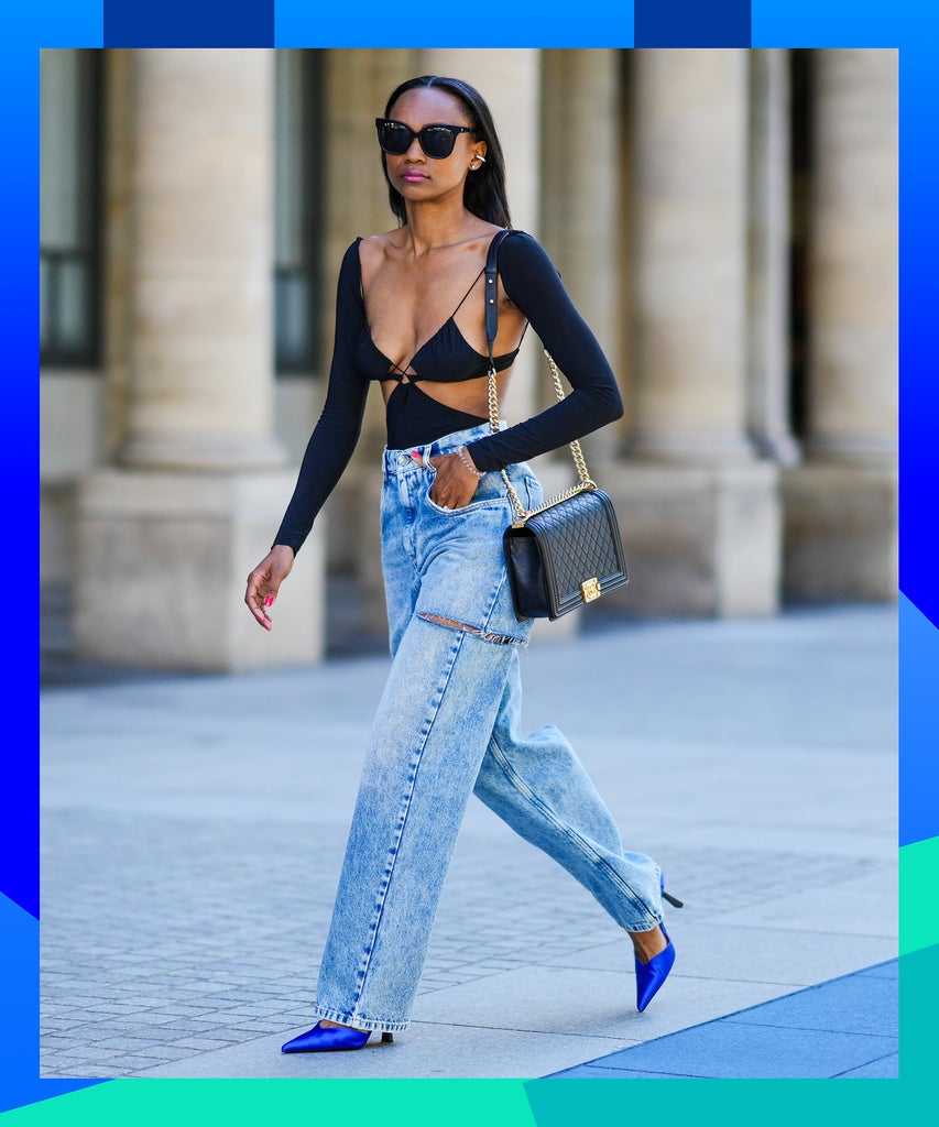 Earlier this year, after reporting on the comeback of low-rise jeans, wide-leg pants, and denim cargos, I struggled to understand my own approach to these trends. My disdain for jeans — thanks, 2010s — had grown so strong that I didn’t own a single pair of denim by May 2022. Still, the desire to have a pair in my wardrobe haunted me, not just because of their seemingly growing popularity (I refuse to admit FOMO!) but because of that particular need for high-low dressing that jeans fulfill. Wide-leg trousers — no matter how chic or casually styled — just don’t have the same informal appeal as denim jeans. And so, I decided this was the year I’d learn to love jeans again.