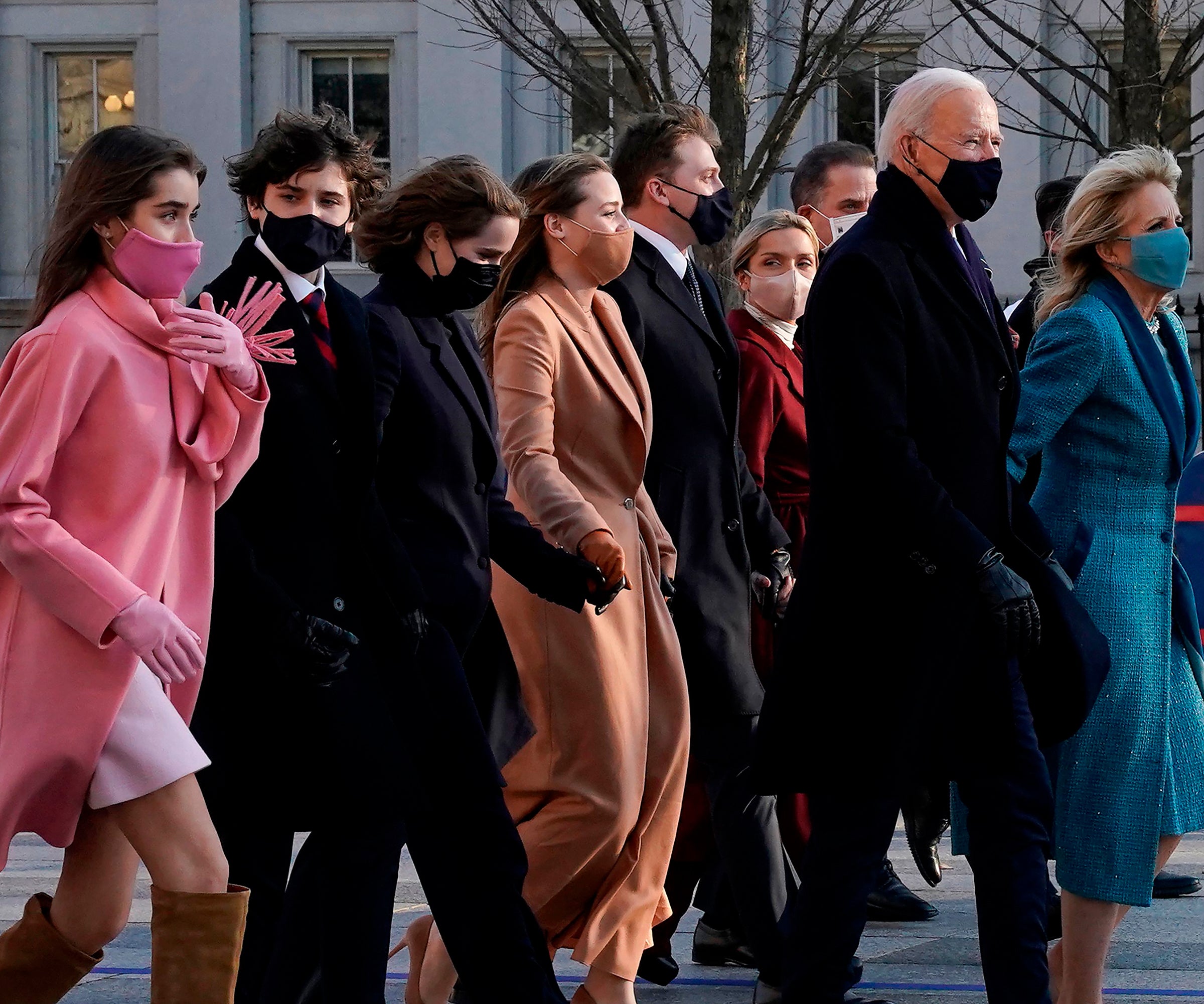 To the same track, TikTok’s @essiehuh called the Biden family’s fashion “immaculate” during a photo montage showing Maisy’s ensemble, as well as the monochrome looks from Natalie, in a bubblegum pink coat by Lafayette 148 New York which made her the day’s style star, and Finnegan, in a camel look from Brandon Maxwell. Biden’s eldest granddaughter Naomi also wore a matching ensemble, choosing head-to-toe white by Adam Lippes.