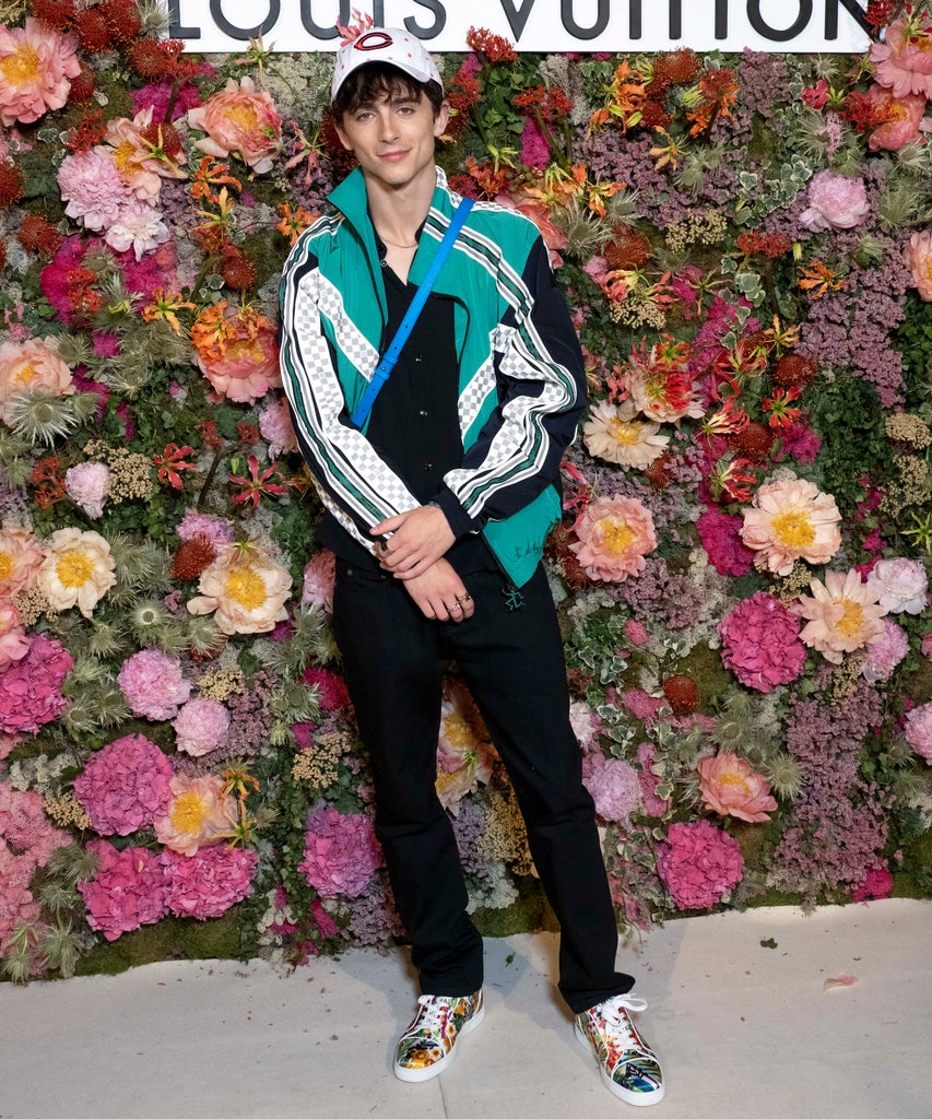 For the star-studded event — which was also attended by Spike Lee, Amina Muaddi, and Maria Bakalova, among others — Chalamet wore (shocker!) Louis Vuitton in the form of an ‘80s-inspired teal track jacket from the spring ‘22 menswear collection, as well as two locket bracelets that designer Virgil Abloh made in partnership with UNICEF. Polishing off the laissez-faire look, he added floral Louboutin sneakers and a Cincinnati Reds baseball cap covered in tiny roses.