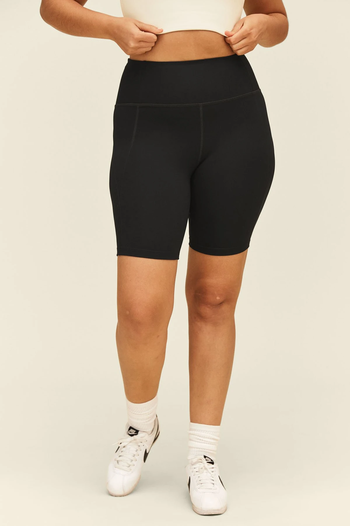 Girlfriend Collective Black High-Rise Bike Short, $, available at Girlfriend Collective