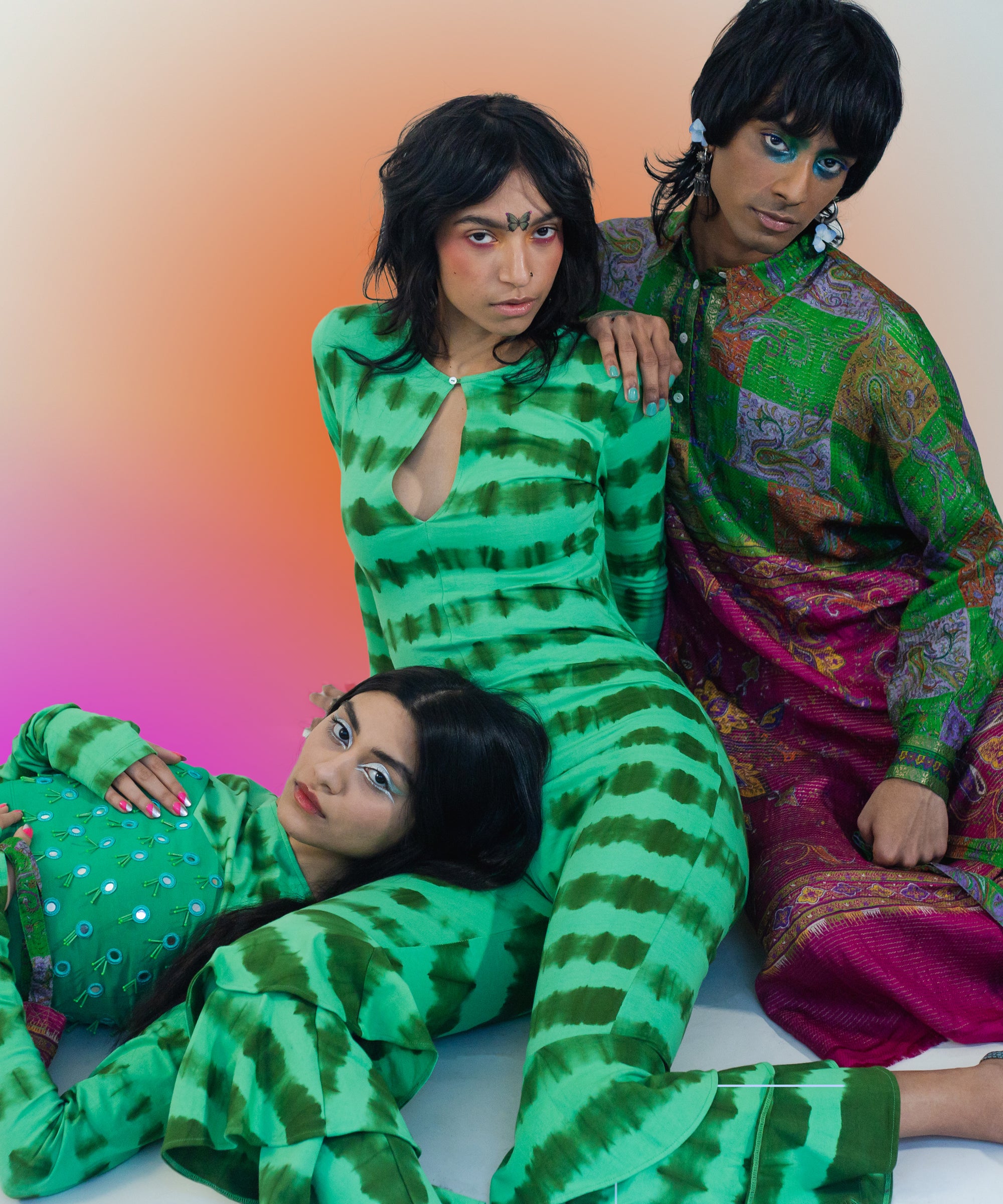 Sood’s project, which started during the pandemic, is just one of many solutions brought forward by young designers who are trying to come up with strategies to reduce the amount of waste created by the fashion industry. Upcycling, which involves using fabrics from an older garment to create a new one, is one of the most popular. Sood had been playing around with the idea of using the saris as the source material for her upcycling projects, creating custom-made dresses in her studio, as well as inviting customers to send their old saris for her to repurpose. “The material is so beautiful and there are so many that are just used once,” she says.