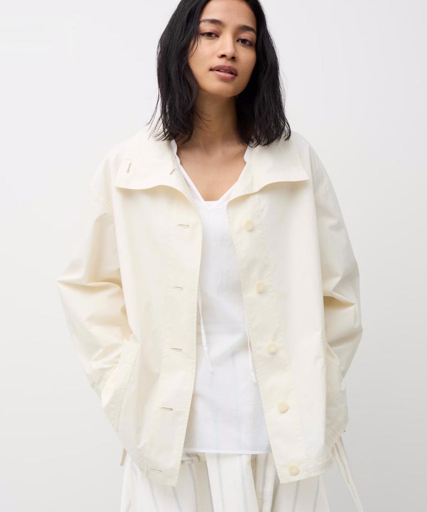 This jacket packs a lot of potential into one piece. While the oversized fit makes it easy to style, its versatility lies in the drawstring hem and adjustable silhouette (the collar can be worn up or down). Available in off-white and navy blue, you can breezily throw this jacket over any spring outfit.