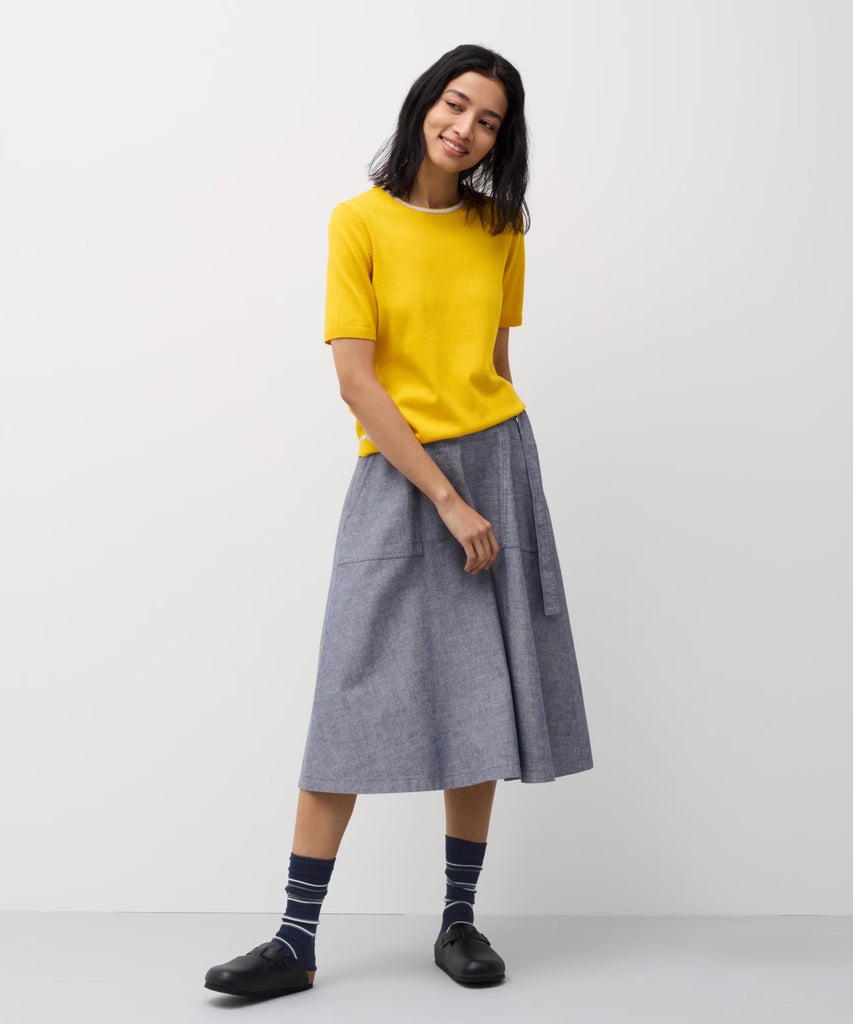 Schoolgirl kilts, though on trend, aren’t always the easiest to style, especially in warmer weather. This skirt has elements of the same casual, youthful aesthetic, with more movement and breathability thanks to its linen-blend composition. Bonus points for the belt-strap detailing, which was all over the fall 2024 runways.