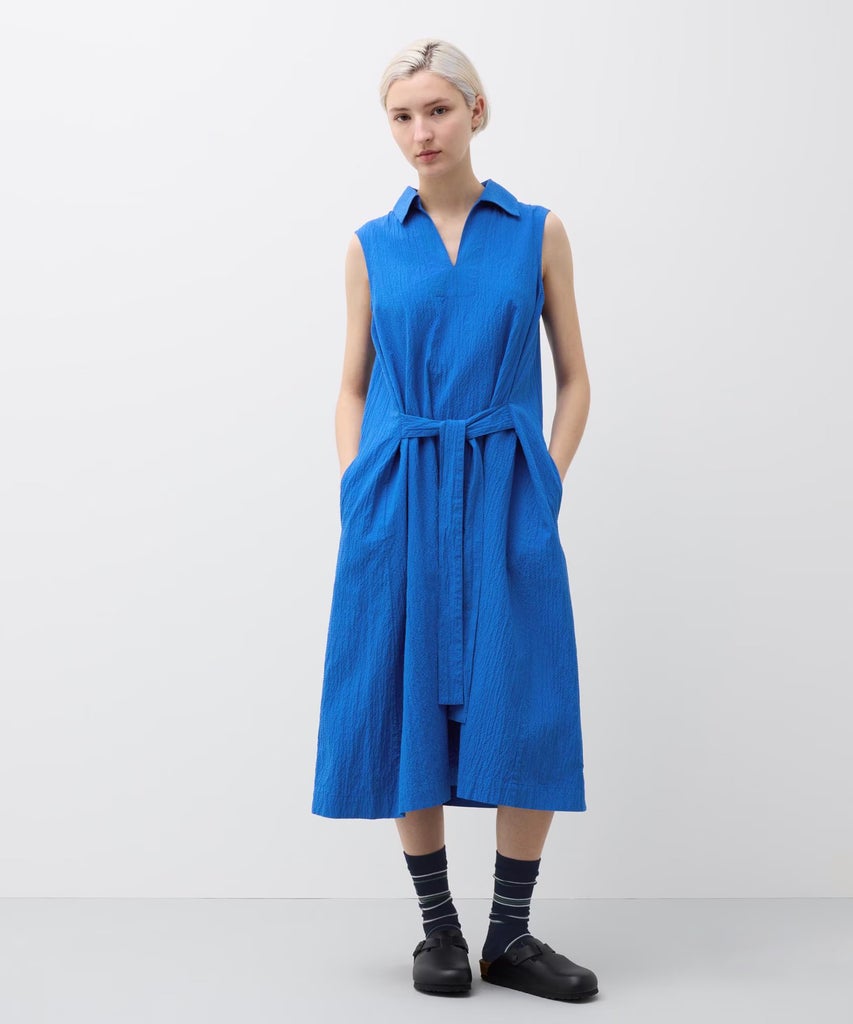 Cotton Seersucker Belted Sleeveless Dress, $59.90