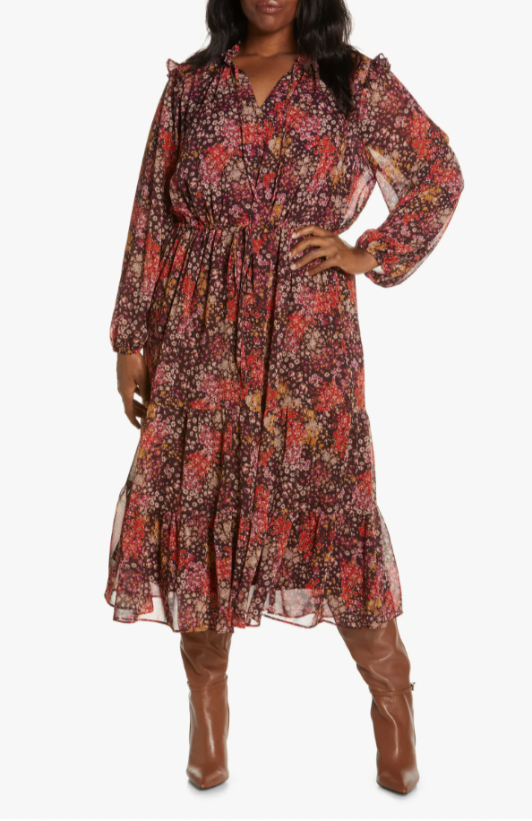 Julia Jordan Tiered Long Sleeve Tie Waist Dress, $, available at Nordstrom