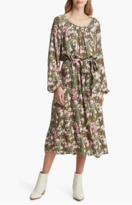 Caslon Long Sleeve Tie Waist Midi Dress, $, available at Nordstrom