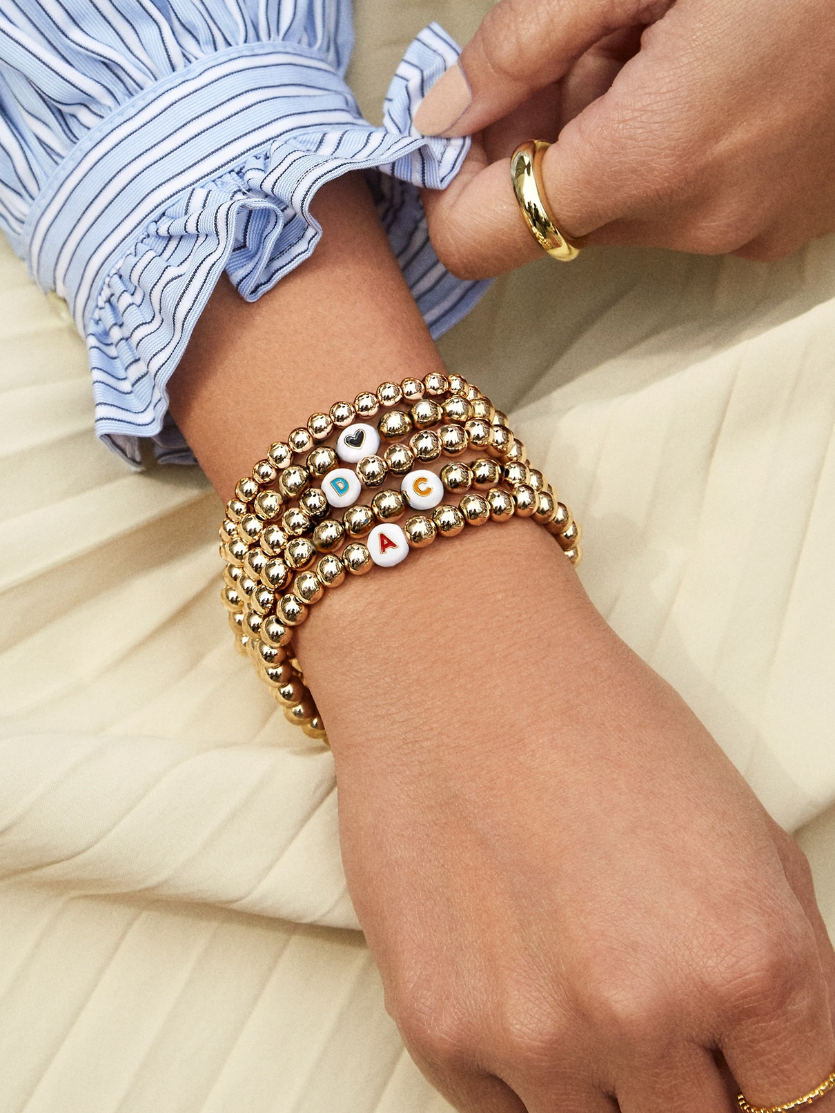 BaubleBar Initial Pisa Beaded Bracelet, $, available at BaubleBar
