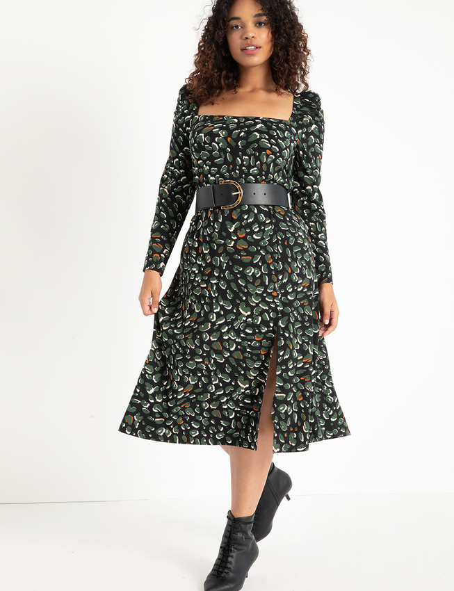 Eloquii Puff Sleeve Square Neck Midi Dress, $, available at Eloquii
