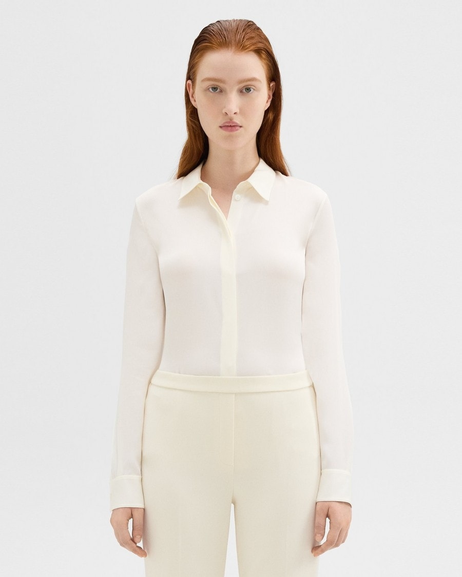 Theory Fitted Shirt In Silk Georgette, $, available at Theory
