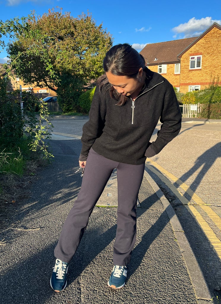 “Everyone is wearing quarter zips this winter, and this black sweater keeps me on trend while enveloping my body in cozy alpaca wool. It warms me up instantly despite being super light, and it has been my go-to sweater for winter travels when I need to be economical about my luggage packing space. I often wear this on the plane with Quince’s stretchy Ponte Boot Cut Pant, another frequently worn item from my travel outfit stash. Do note that the item is cut in a smaller fit compared to what you see on the e-commerce photos, so I would go up a size where possible.” —Venus Wong, Senior Travel Writer