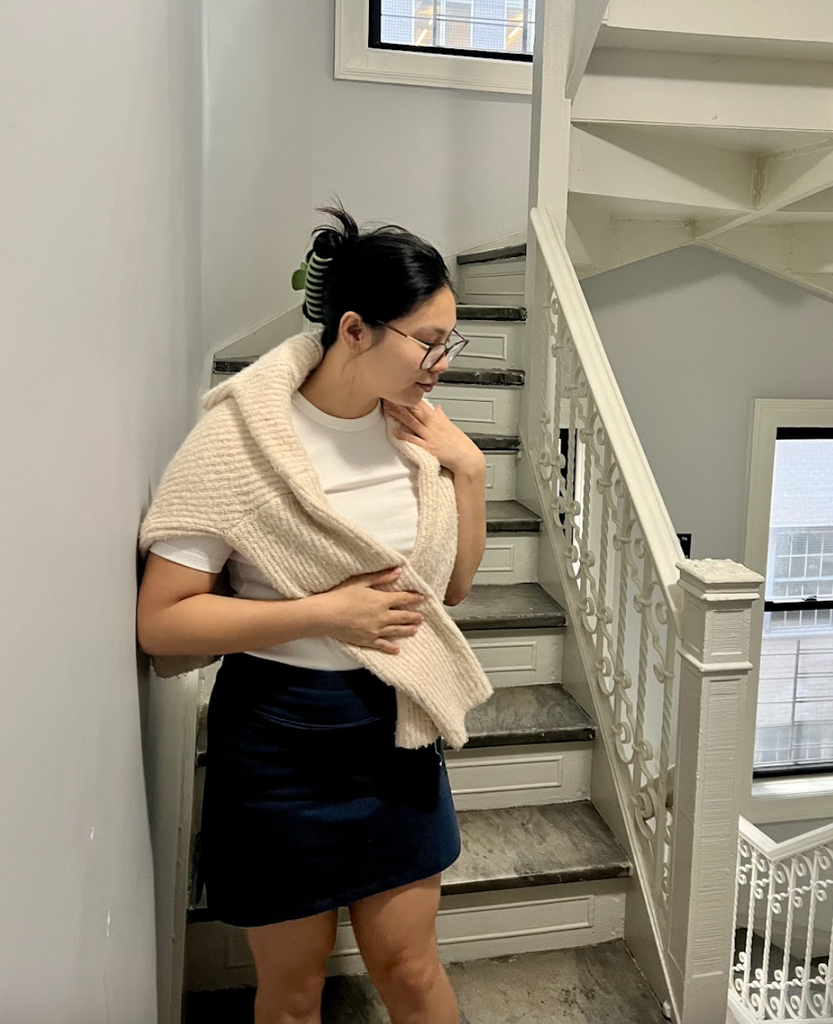 “I love skorts, and this one has been added into my rotation. I’m wearing it on dog walks, shopping trips, and just around my apartment – nowhere is off limits. The French Navy color pairs well with t-shirts, a sweater, a crop top, and basically any casual top, making it very versatile. Just the other day, I wore it with a plain white shirt, white sneakers, pigtails, and a trucker hat. I really like how it’s so soft and comfortable, and the fabric is thick enough and has enough coverage to keep me warm from fall drafts. What sets it apart even more though is the two (yes, two!) pockets that it has on the short part.” —Becca Sax, Affiliate Coordinator