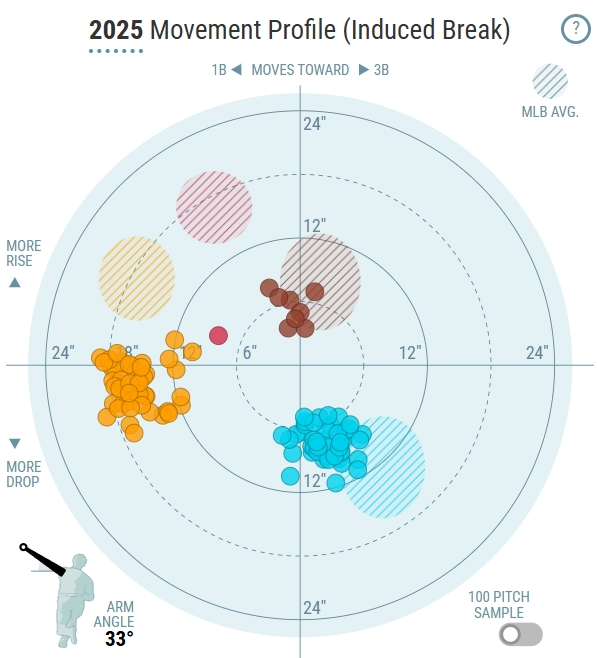Both pitchers have a gap in their arsenals that these pitches could theoretically fill. Little could use something that has significant glove-side movement to counterbalance his sinker (shown in orange below):