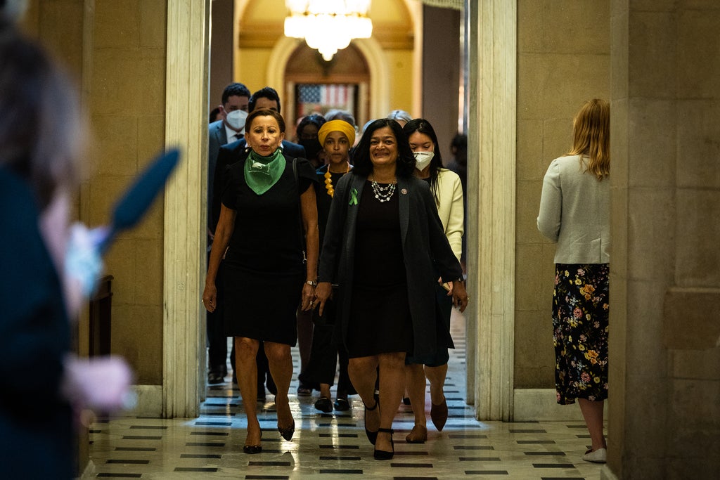 Now, the green scarf has made its way from the protests on the streets to the United States Congress. Last week, New York Congresswoman Nydia Velazquez wore the symbol around her neck when she joined other Democratic members of the House to march to the Senate, ahead of the latest effort to protect Roe v. Wade, which didn’t pass.