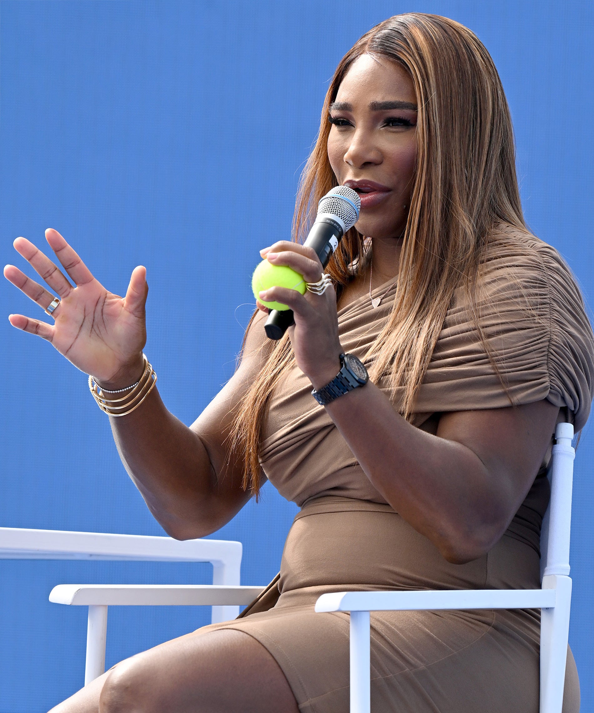 Days after competing in what will likely be her last ever professional tennis match — though her older sister Venus is hoping she’ll “evolve back” for a few doubles games here and there — Williams unveiled the new S by Serena collection on the roof of Spring Studios during New York Fashion Week’s “Glam Slam” event. The Tennis x Fashion event skipped a traditional runway for something more suited for a tennis legend: a tennis court, embodying Williams’ plans to tackle her next chapter with the same fervor she applied to tennis.