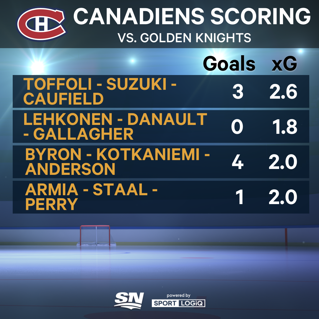 Roughly eight per cent of screened shots have resulted in goals during the playoffs. While several teams emphasize getting traffic in front of the net, this tactic is far from the most efficient way to score. If the Canadiens can continue to win the net-front battle in terms of inner slot shots and produce quick-strike chances in transition, they will have a good chance of coming back to Montreal with a 3-2 series lead. Montreal’s last five goals have all been scored inside five seconds of the puck being in play in the offensive zone. By comparison, Roy’s overtime winner in Game 4 came after 33 seconds of sustained offensive zone time for Vegas.