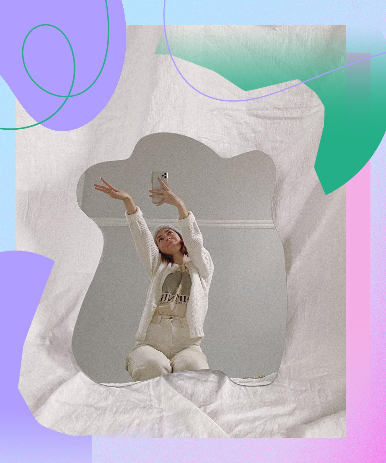 As ubiquitous on the grid as checkerboard-patterned looks (blame The Queen’s Gambit — or, you know, the ‘70s making a comeback) are languidly curvy mirrors featuring full outfits, nail art, and artistically framed selfies. The mirrors range from being puddle-like to rectangular with wavy or oval frames, and pretty much all of them are crafted in eye-catching colors or interesting shapes. While statement mirrors are not innovative in the home space, what’s new is that they have now firmly entered Fashion Territory, as the unofficial It accessory of #OOTD posts. (Even the six-pound Italian Greyhound-Chihuahua influencer Boobie Billie is a fan of the trend.)
