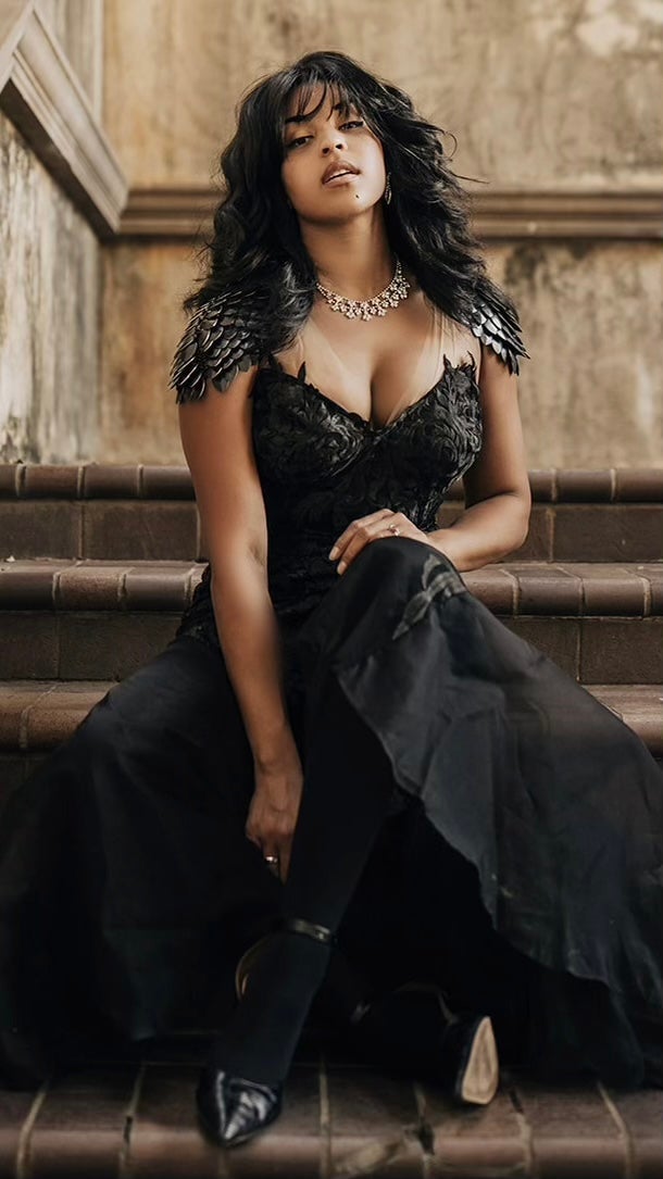 Madison Alexandra knew she wanted to wear a black wedding dress to her nuptials ever since she was a little girl. “I originally wanted to have wings, but I cut that out,” she says. Still, when it came time for her big day, the model and lingerie educator did want that fairytale gown. Inspired by Queen Ravenna (played by Charlize Theron) in Snow White’s film adaptation, Snow White and the Huntsman, Alexandra walked down the aisle wearing a black gown covered with an armor-like shoulder plate in May 2021. “I thought she looked very regal, and I wanted that kind of look,” she says.