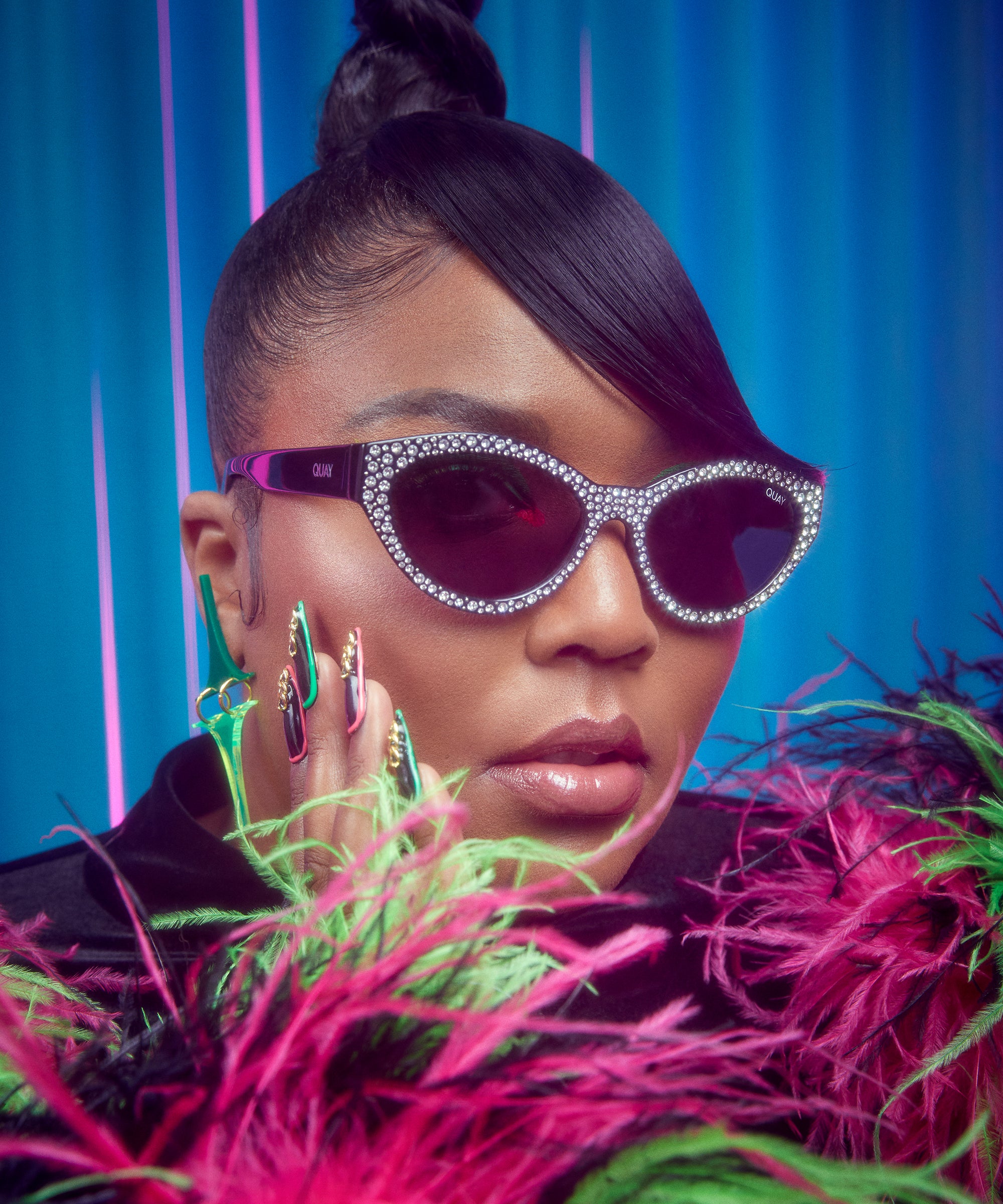 To ensure that the second Quay x Lizzo campaign was authentic to the artist, the brand tapped her longtime friend and creative director Quinn Wilson to concept and direct it. “This shoot felt like family,” Lizzo says. “Quinn really took the lead with concepts and I followed her leadership. I trust her, so it’s easy to create together.”