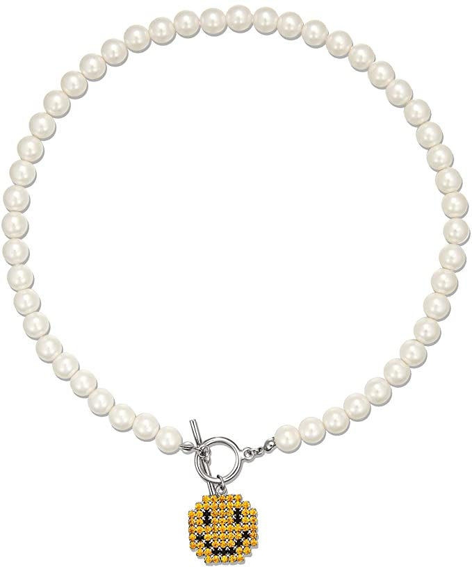 Add a classic smiley face pendant to an otherwise elegant pearl necklace and you’ve got a fresh take on the Y2K aesthetic.