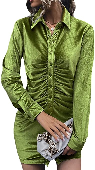 Nihsatin Ruched Bodycon Shirt Dress on Amazon