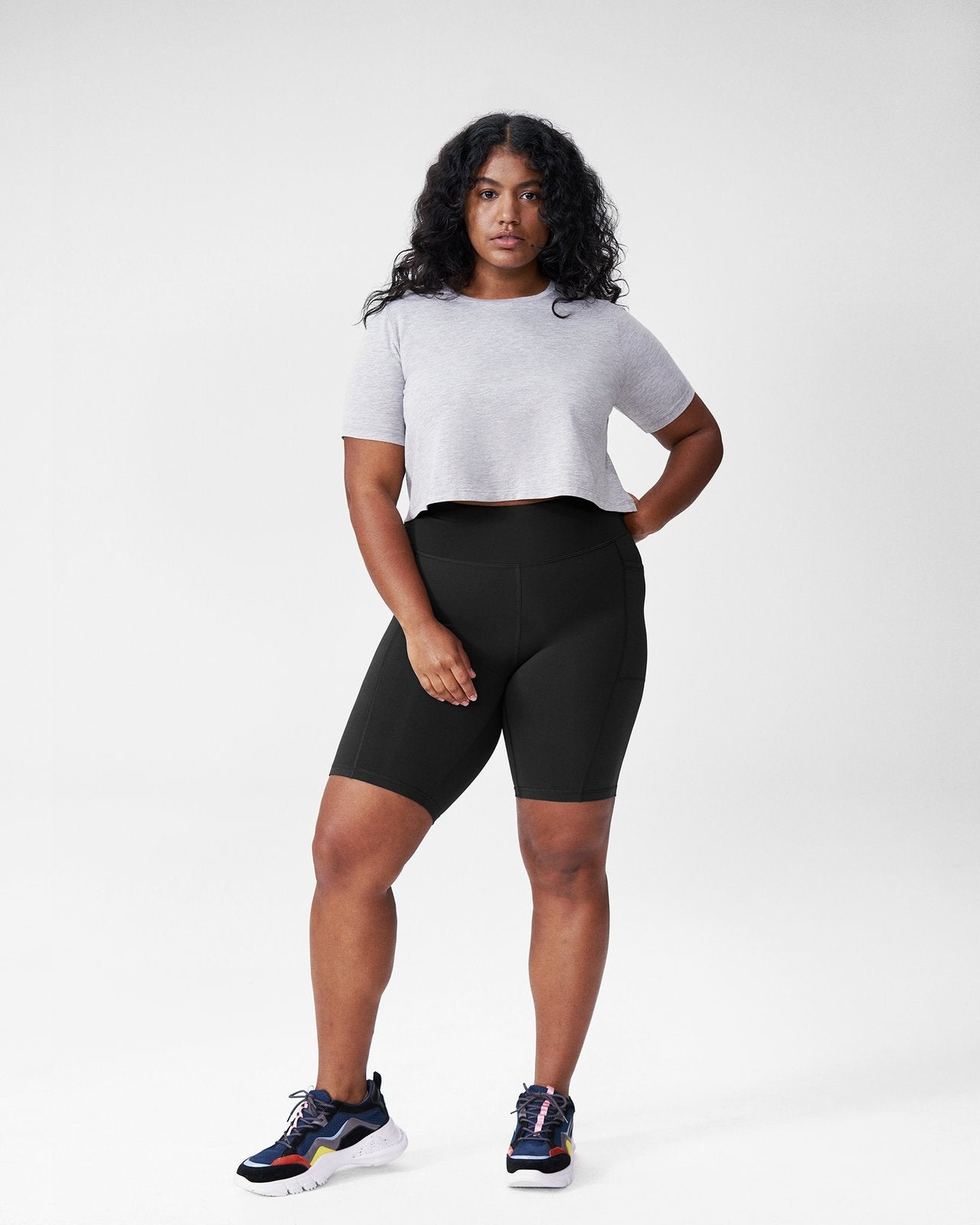 Universal Standard Knockout Bike Shorts – Black, $, available at Universal Standard