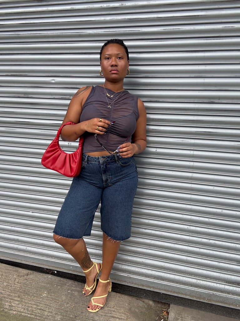 As a former non-shorts person, I never thought I’d see the day where I’d wear denim shorts for a date night or night out. But turns out, jorts can be dressed up with ease — just add heels and a crop top. I also like to accessorize with loads of jewelry and the right handbag, too.