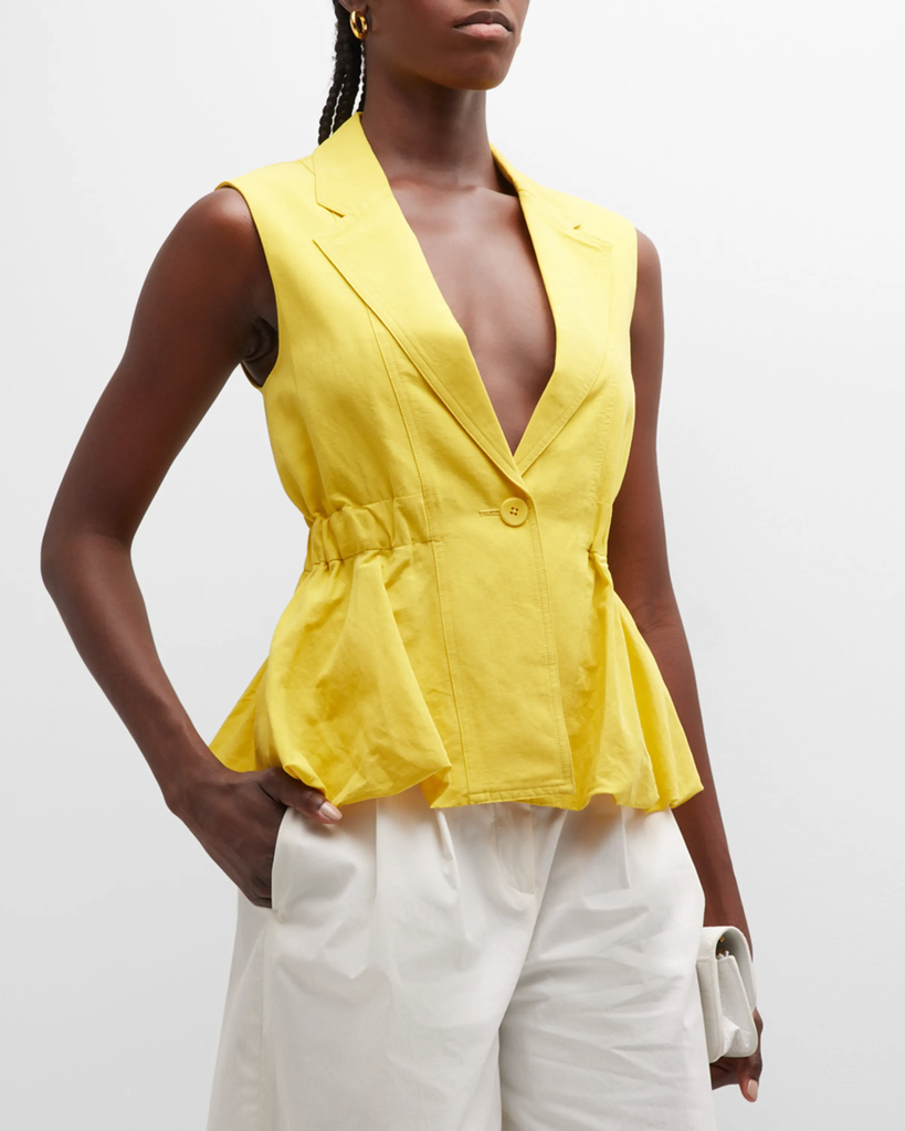 “From ready-to-wear to shoes and handbags, yellow was a consistent theme in Spring 2023 shows. Wear head-to-toe for an instant mood boost, or just a pop with a yellow accessory. From soft butter to a deep marigold, there is a flattering choice for everyone.” — Jodi Kahn, VP of luxury fashion at Neiman Marcus