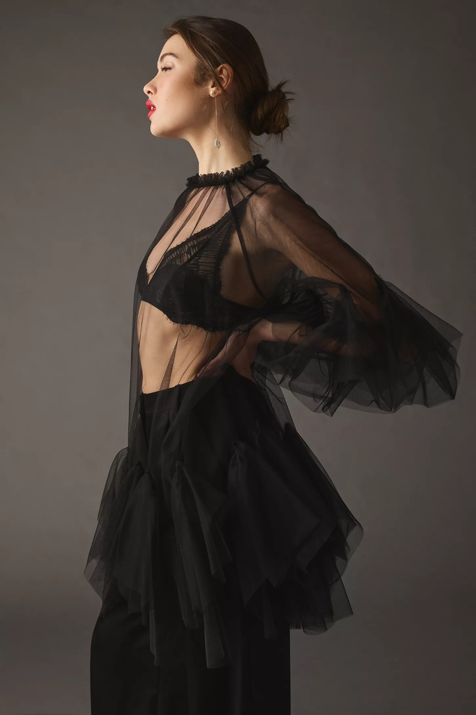 “What I love about the sheer dressing trend is the ability to style items in so many ways for whatever comfort level of sheer works for you. [Personally] I love a great sheer lace dress over some jeans with a fitted white tank but love all the women I see proudly rocking the look with just a bra and panty.” — Anu Narayanan, chief merchandising officer at Anthropologie