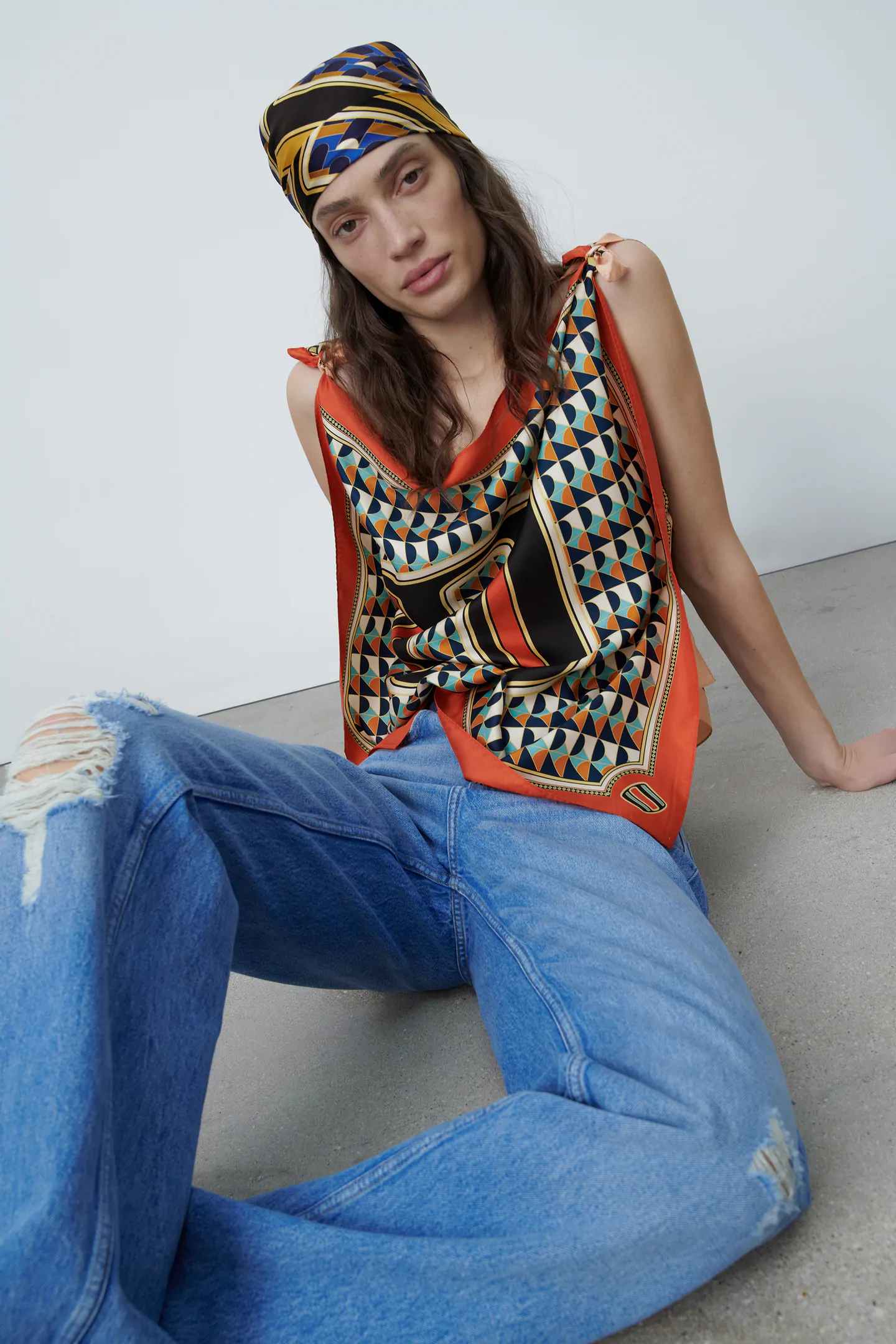 In the lingerie department, expect boxer-short-button-down sets à la Tom Cruise in Risky Business; for jewelry, colorful glass rings like the ones seen all over TikTok; and in activewear — a new category for Zara — fitted catsuits in neutral and pastel shades. The collection also features accessories like silk scarves worn as tops and head wraps and detachable, denim collars. Non-skinny jeans and stirrup leggings all, too, appear in the no-trend-missed collection. Now all you have to do is pick the ones you want.